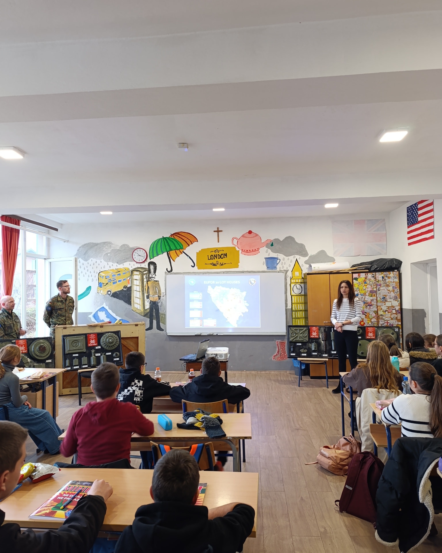 Učenici su kroz predavanje upoznati s vrstama mina, njihovom opasnošću te načinima prepoznavanja znakova koji upozoravaju na minski sumnjiva područja.
