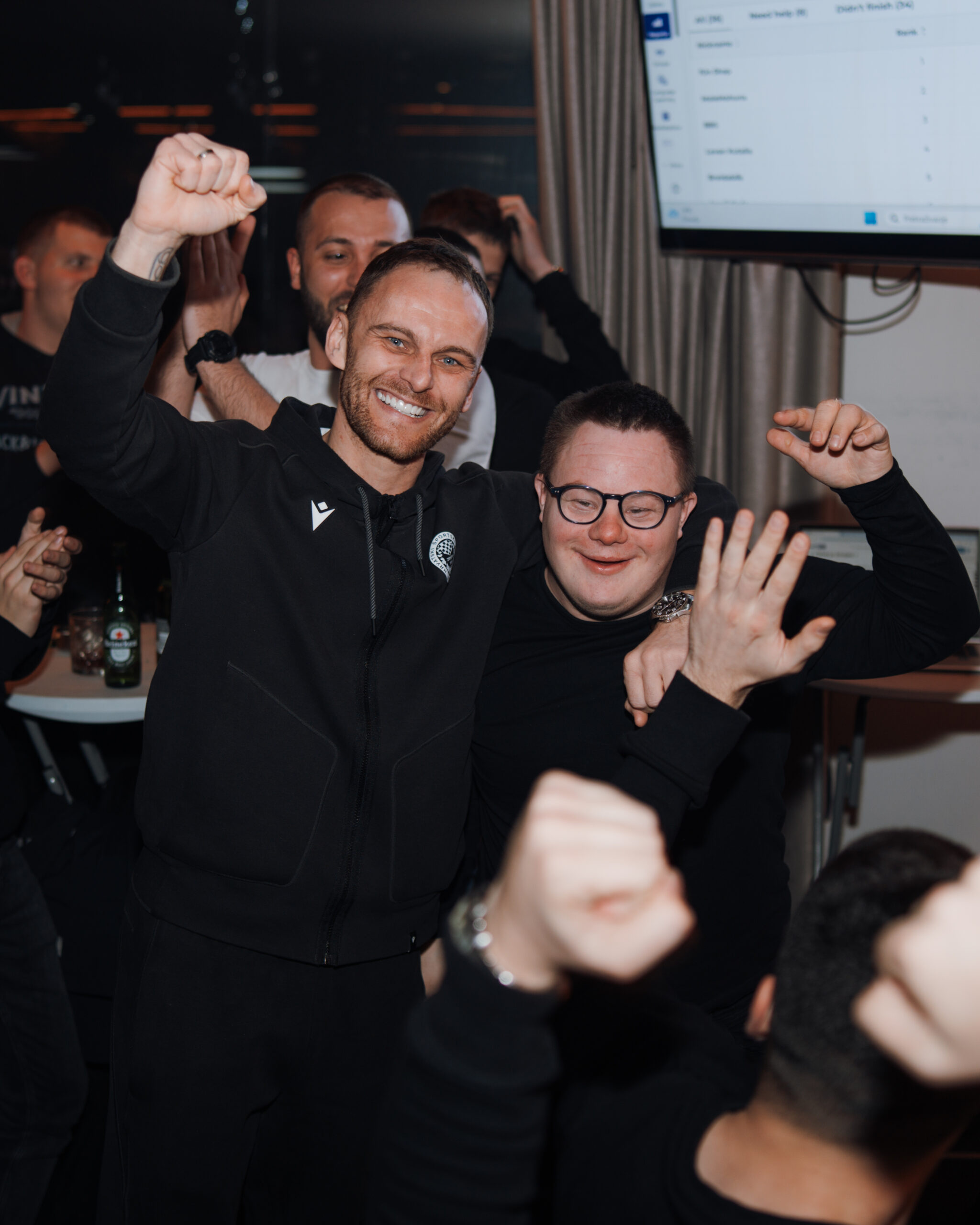 Večer je protekla u opuštenoj atmosferi, zajedništvu navijača, a posebno oduševljenje svih prisutnih izazvao je dolazak stručnog stožera na čelu s trenerom Igorom Štimcem i nekolicinom igrača predvođenih Nemanjom Bilbijom.