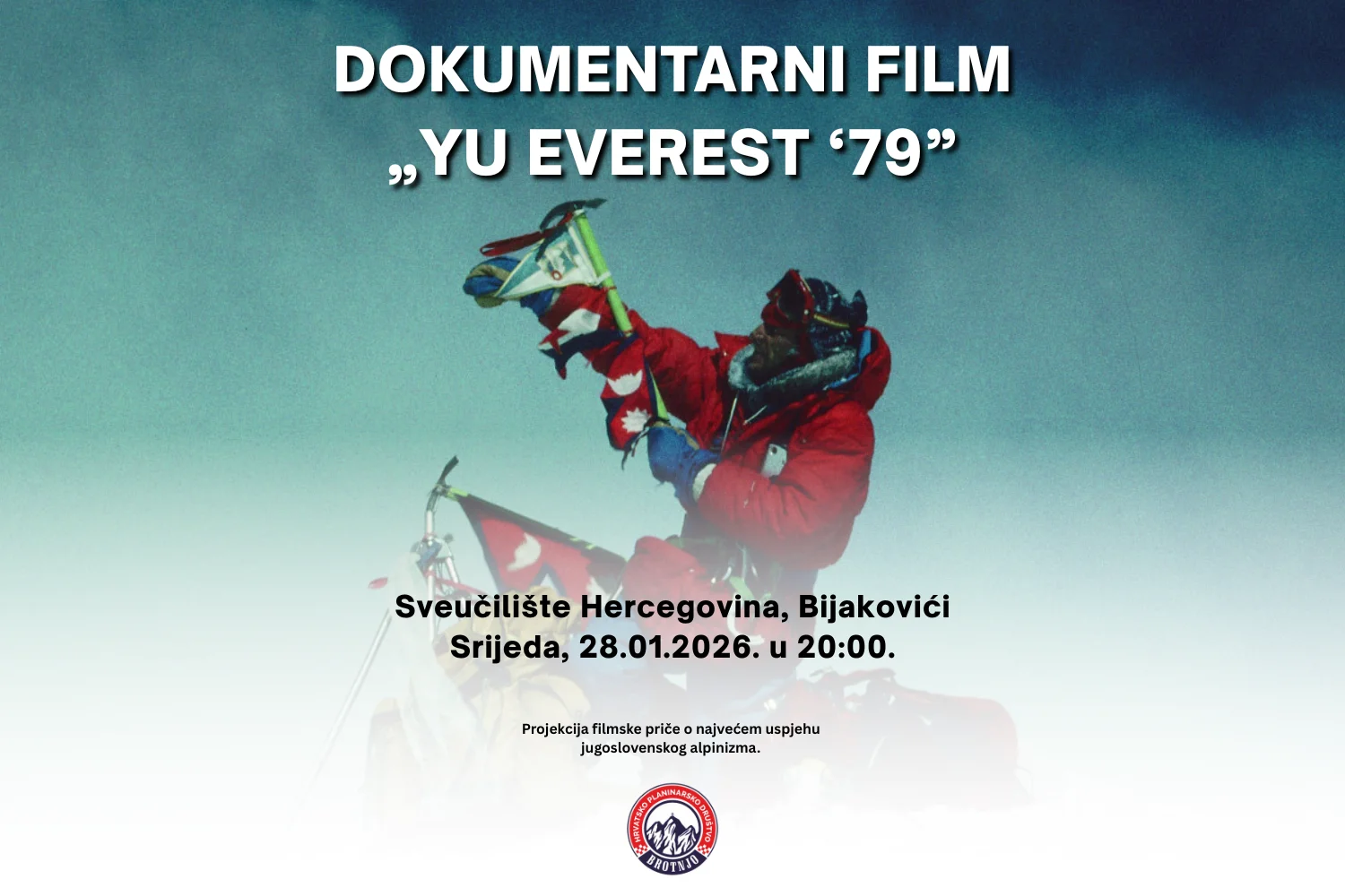 • HPD Brotnjo : Projekcija dokumentarnog filma „YU EVEREST ‘79” – filmske priče o najvećem uspjehu jugoslovenskog alpinizma