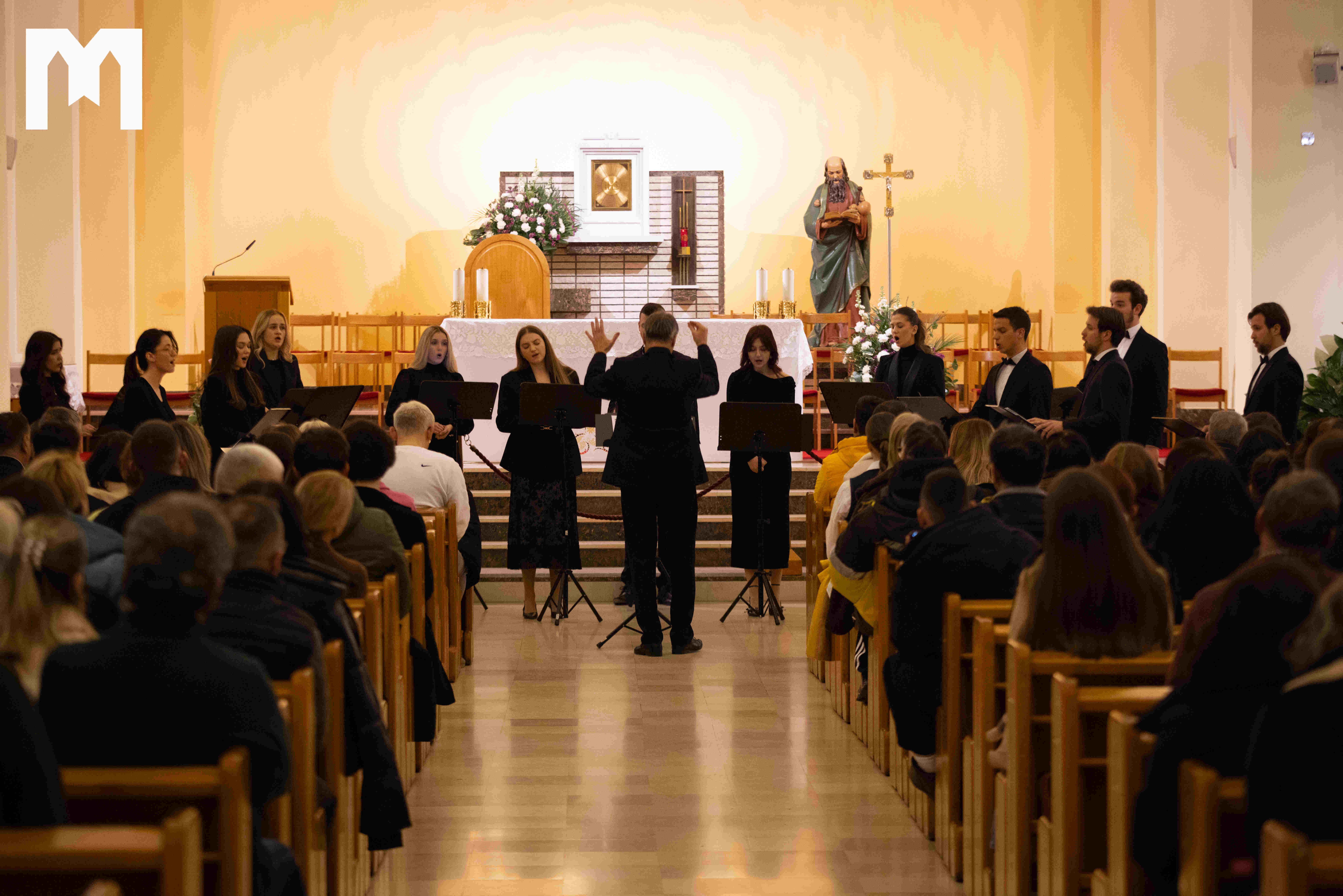”Misa pape Marcela, je posvećena papi Marcellu II. A on je bio papa samo tri tjedna u 1555. godini. Zove se i Misa sine nomine ili bez imena. Skladatelj je Giovanni Pierluigi da Palestrina. Rođen je, evo bit će za mjesec dana, točno 500. godina. Stoga možemo reći da je ova izvedba, kao obljetnica na njegovo rođenje od prije 500 godina. (1525 – 1594). Ovo je njegova najpoznatija misa i smatra se posebnim primjerom složene polifonije. Takvu polifoniju je zagovarao i sam Palestrina. Skladana je 1562 g. Pjevala se samo na papinskim krunidbenim misama. Posljednja izvedba je bila na krunidbi Pavla VI. 1963.