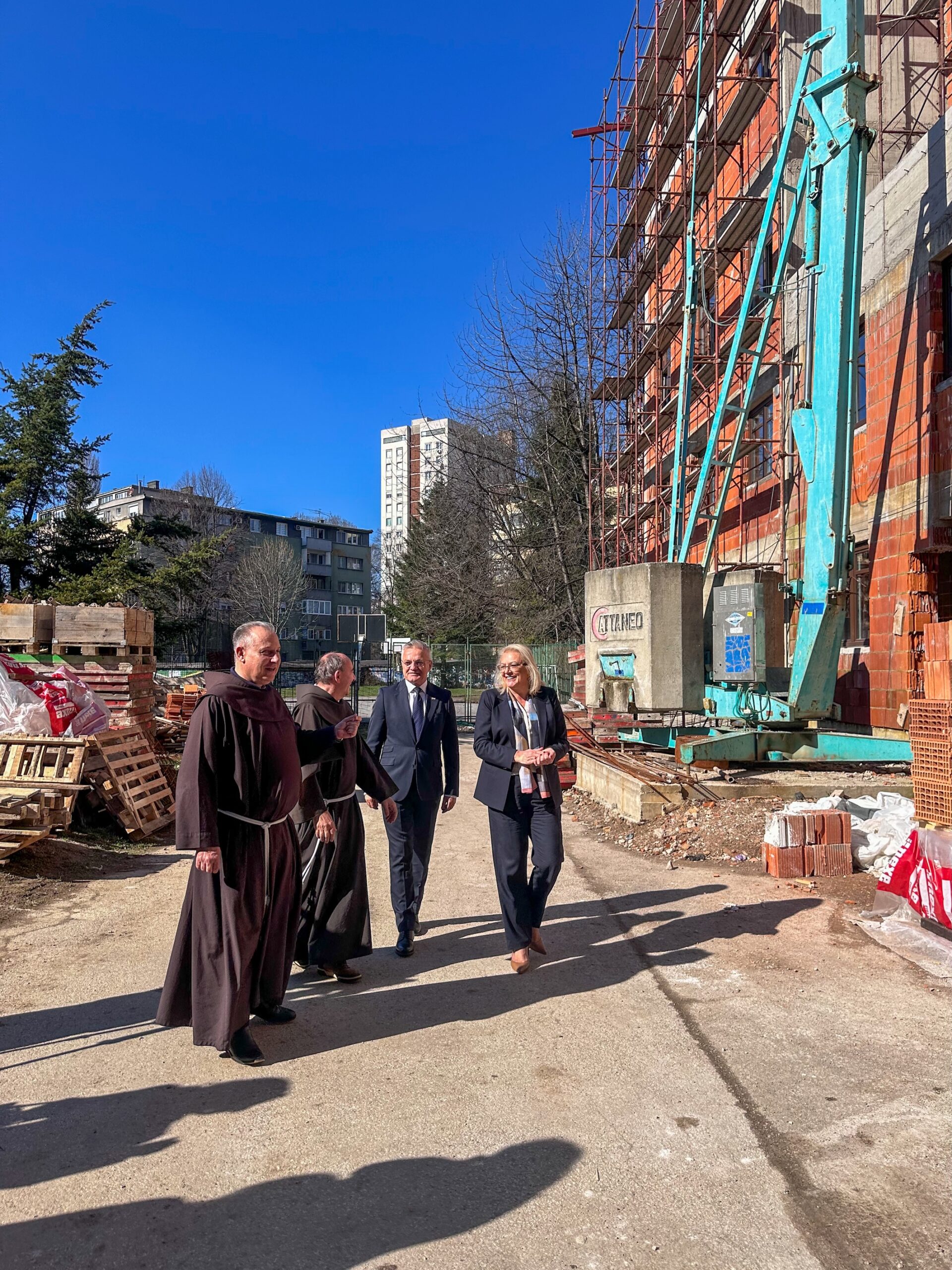 Nakon sastanka, Bradara i Milas posjetili su Franjevački provincijalat Bosne Srebrene u Sarajevu, gdje se provodi projekt proširenja Franjevačkog studentskog centra. Riječ je o prostoru koji je desetljećima mnogo više od zgrade – mjestu susreta, učenja i zajedništva, u kojem djeluju brojne institucije i inicijative, među njima Franjevački studentski dom, Franjevački svjetovni red (FSR), Franjevačka mladež (FRAMA), FMC Svjetlo riječi i HKO Kruh sv. Ante, kao i druge aktivnosti važne za život zajednice.