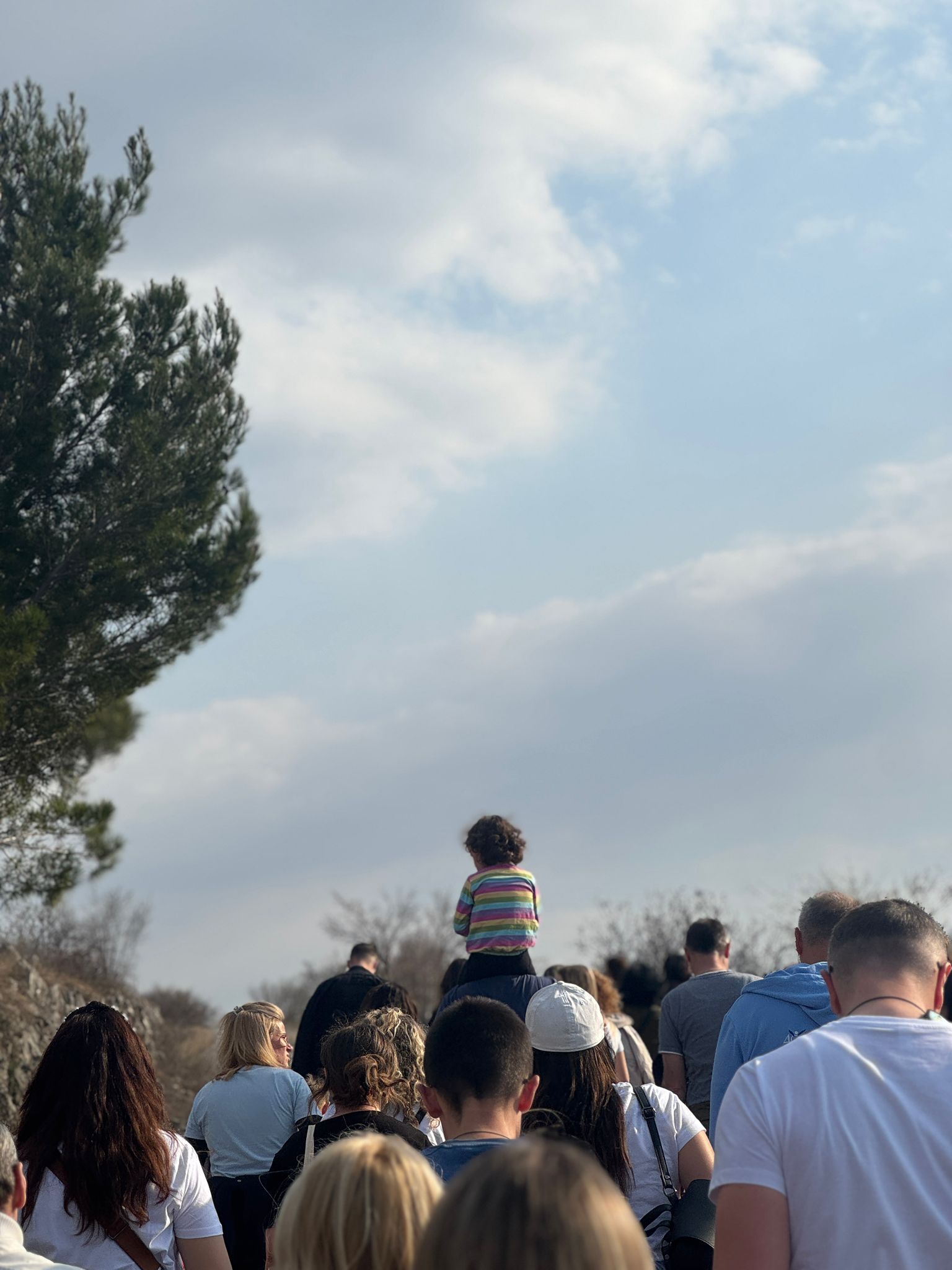 Vrijeme je tijekom hoda bilo gotovo simbolično. Pod toplim i sunčanim nebom kolona molitelja uspinjala se prema vrhu brda. No, kako su se približavali križu, oblaci su tiho prekrili nebo, a upravo kod križa palo je tek nekoliko kapi kiše – kao blagi dodir neba nad molitvom okupljenih. U tišini brda, između zemlje i neba, taj trenutak mnogi su doživjeli kao snažan i dirljiv znak nade.