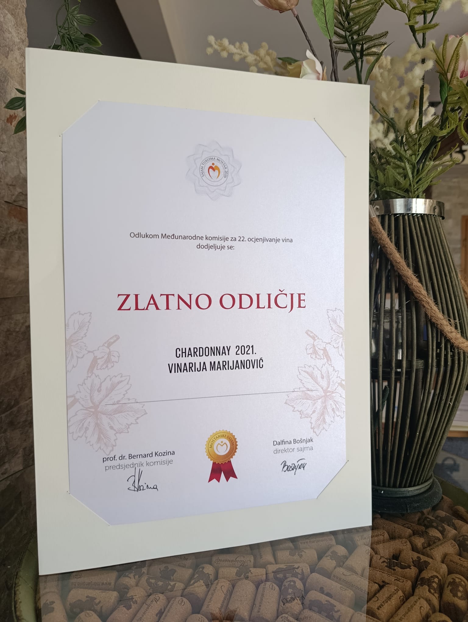 - Chardonnay 2021.: dobitnik zlatnog odličja