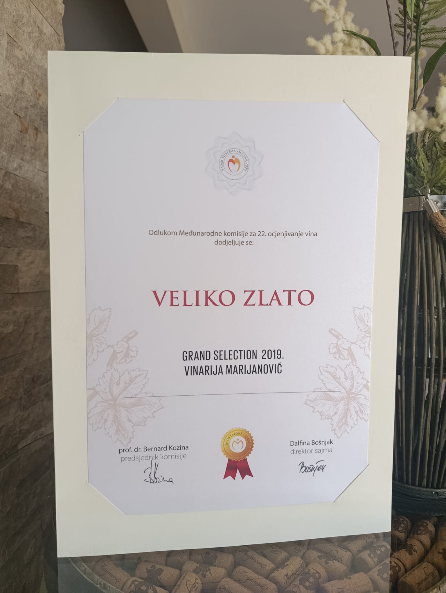Vinarija Marijanović je ponovno potvrdila da pripada samom vrhu hercegovačkog vinarstva osvojivši veliko zlatno odličje za vino Grand Selection 2019. na ocjenjivanju u sklopu 27. Međunarodnog sajma gospodarstva 2026. u Mostaru.