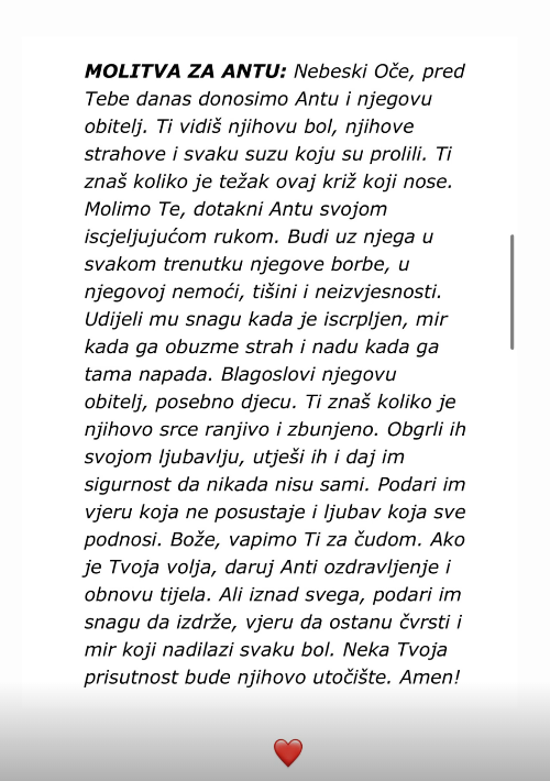Unatoč svemu, obitelj Babić šalje snažnu poruku – bolest im je oduzela sigurnost i planove, ali ne i dostojanstvo, ljubav i vjeru. Kristina poručuje kako su naučili živjeti dan po dan, bez velikih planova i garancija, ali s puno više svijesti. I dok bolest slabi tijelo, duh ove obitelji ostaje neslomljiv.