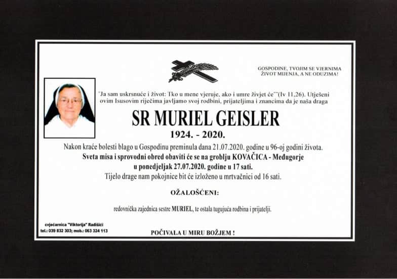 Izraz sućuti povodom smrti časne sestre Muriel Geisler