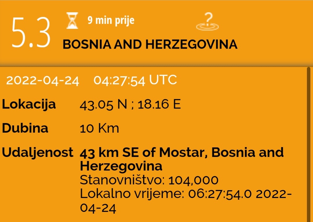 Župnik u župi Sv. Ilije proroka u Stocu don Ljubo Planinić, 23. travnja osvrnuo se na snažan potres čiji je epicentar prošle noći bio 19 kilometara istočno od ovoga grada u istočnoj Hercegovini.