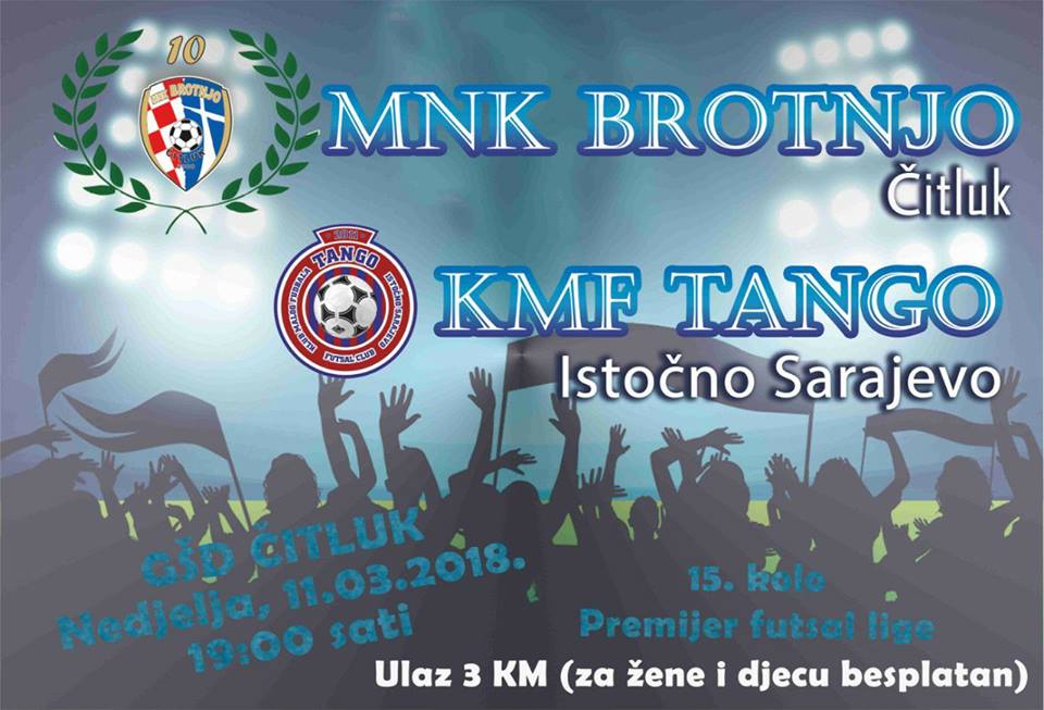 U sklopu 15. kola Premijer futsal lige BiH momčad MNK Brotnjo dočekuje KMF Tango iz Istočnog Sarajeva. Brotnjo je posljednju ...