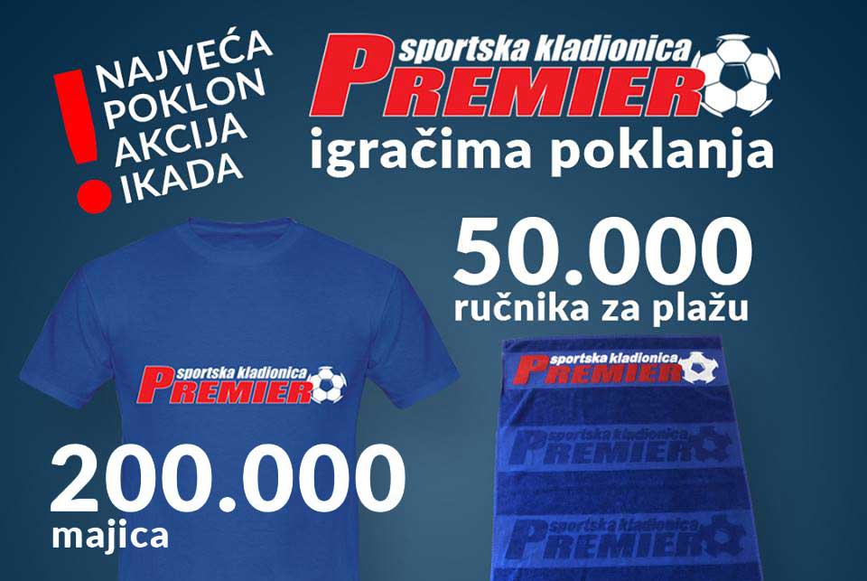 NAJVEĆA POKLON AKCIJA IKADA! Premier kladionica članovima Premier kluba poklanja 200.000 majica i 50.000 ručnika za plažu u višemilijunskoj vrijednosti! ...