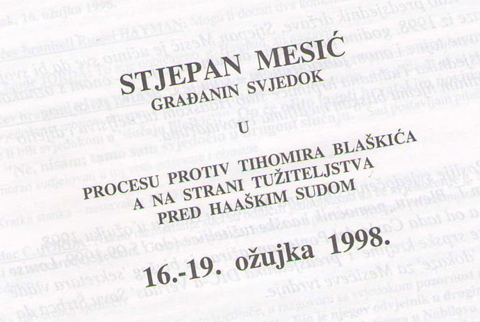 Ovo svjedočenje Stipe Mesića iz 1998. godine u procesu protiv Tihomira Blaškića, je bilo podloga na kojoj je haško tužiteljstvo ...